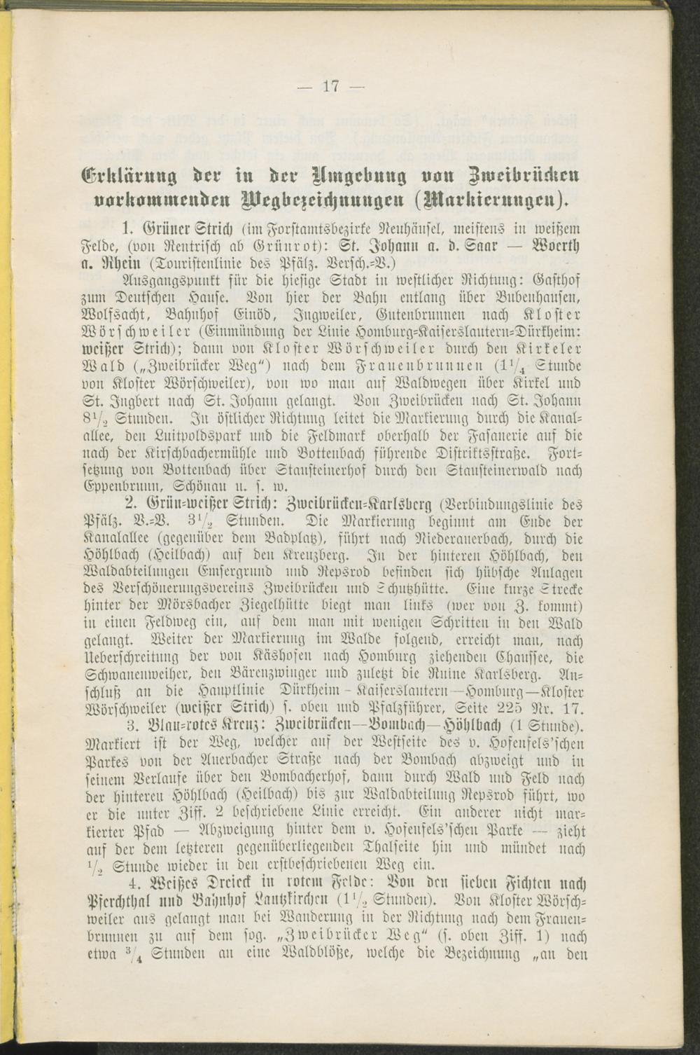 Erklärung der in der Umgebung von Zweibrücken vorkommenden Wegbezeichnungen (Markierungen).