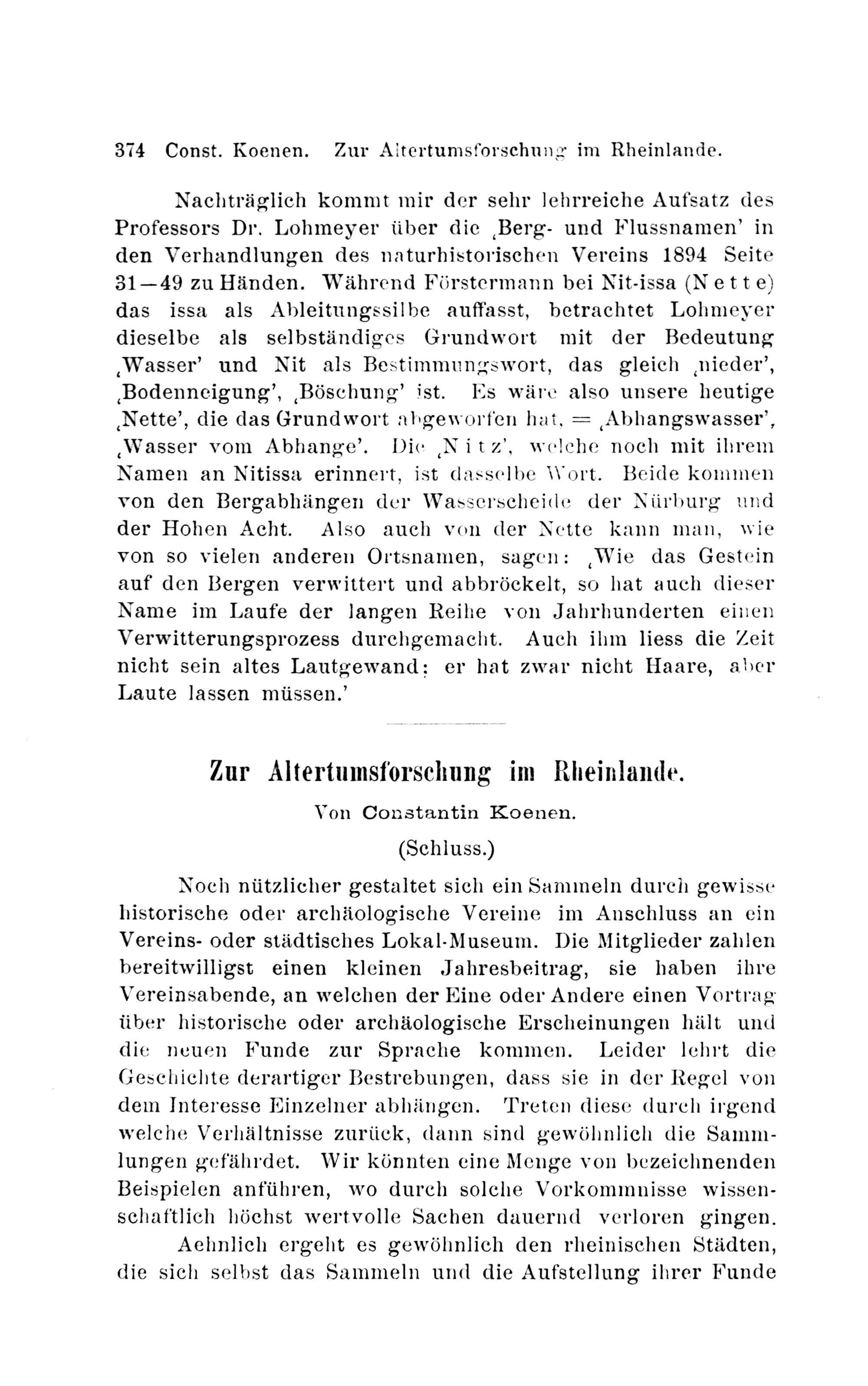 Koenen, Constantin: Zur Altertumsforschung im Rheinlande
