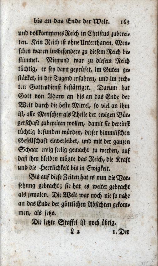 Die Göttlichen Absichten. IV. Von den jetzigen Zeiten bis an das Ende der Welt