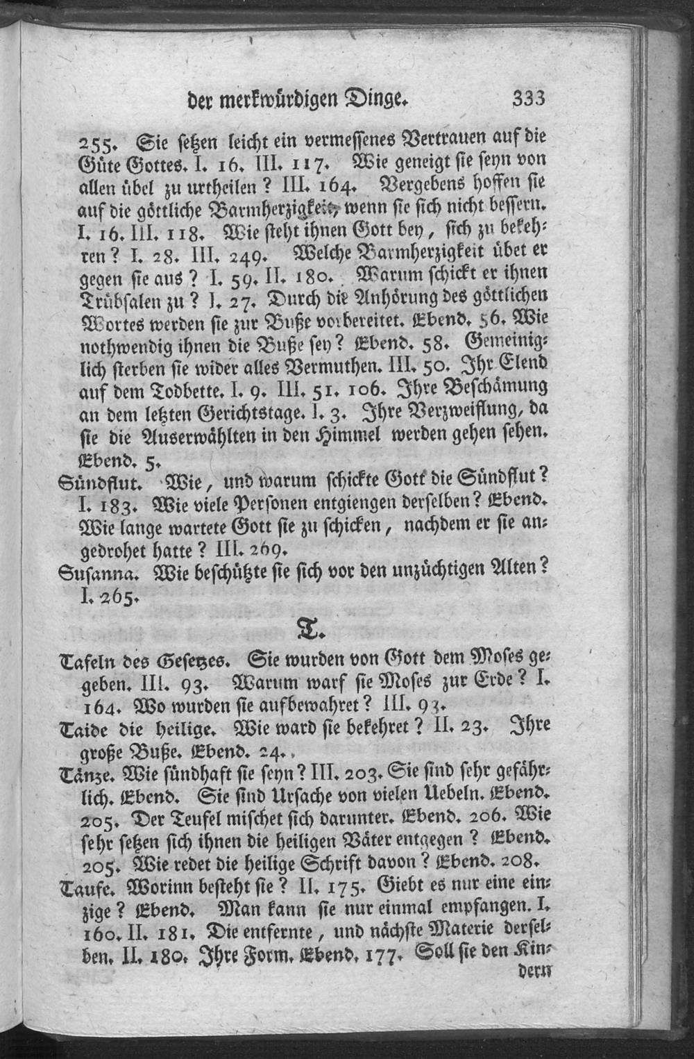 Verzeichniß der merkwürdigen Singe, welche in den drey ersten Theilen dieses Werkes enthalten sind