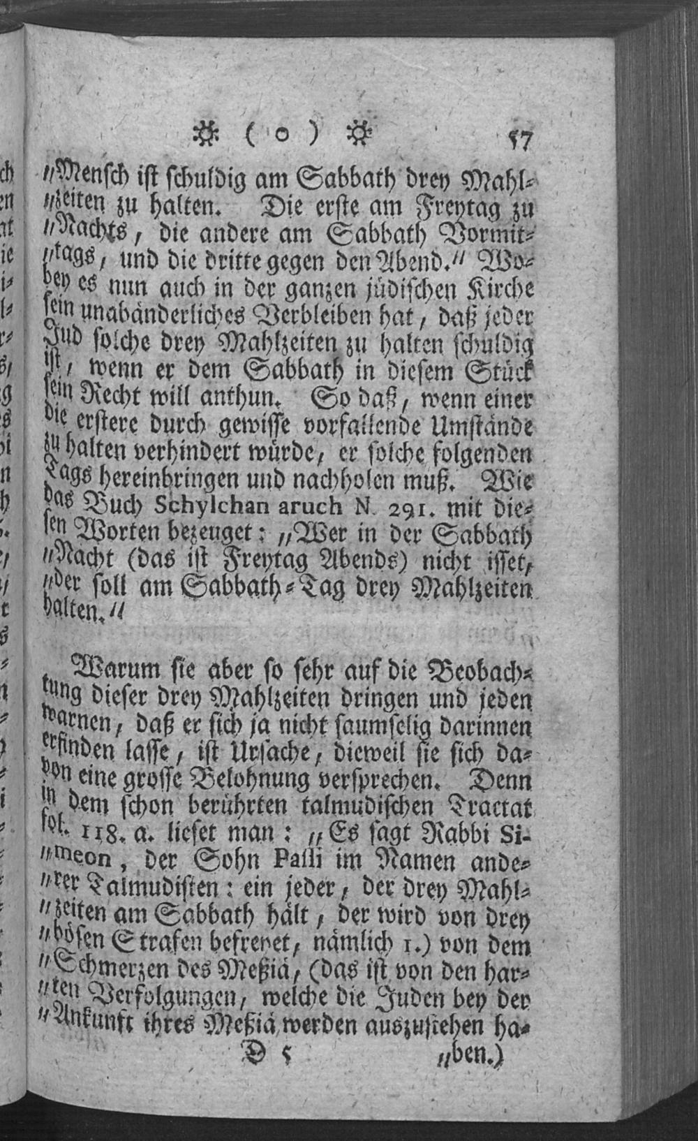 Vten §. Wo noch von einigen besonderen Dingen, die ein Jud sowohl vor als an dem Sabbath beobachten soll, gehandelt wird