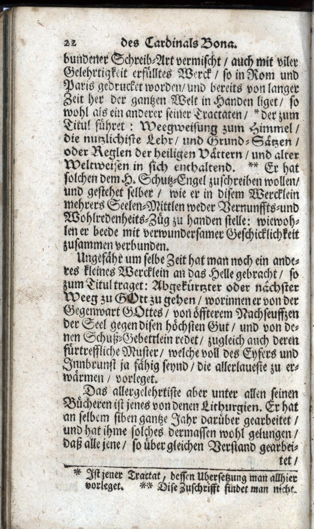 Handleitung zum Himmel Die auserlösneste Lehren H. H. Vätteren, Und Alter Weltweisen, in sich enthaltend / Lateinisch verfasset Durch Joannem, der H. Römisch. Kirchen-Cardinalen Bonam, Des H. Cistercer-Ordens. Nachmals ins Frantzösische übersetzet/ Und mit Beyruckung kurtzen Innhalts/ dessen Lebens-Lauff/ wie auch Testaments oder letzten Willens/ in Druck gegeben/ anjetzo aber aus Lateinisch- und Frantzösischem in reines Teutsche gestellet, auch mit einigen Anmerckungen vermehret von P. Friderico Falzeder, Professen in dem hoch-löbl. Stüfft, und Closter Crembsmünster/ auch der Zeit vorgestellten Seelsorgern der Pfarr ad S. Udalricum in Eberstallzell