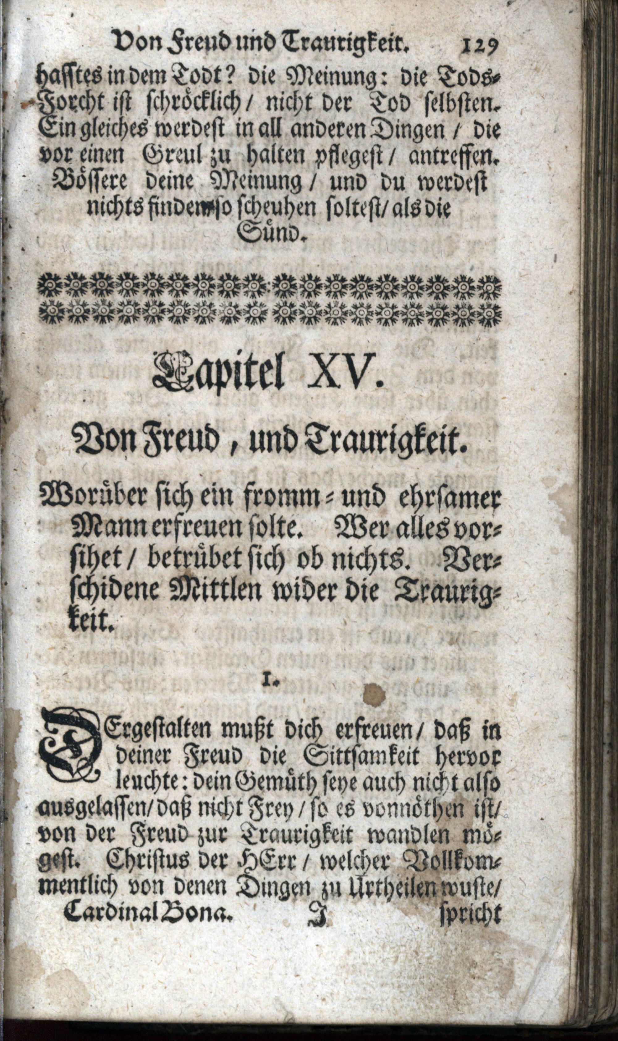 Handleitung zum Himmel Die auserlösneste Lehren H. H. Vätteren, Und Alter Weltweisen, in sich enthaltend / Lateinisch verfasset Durch Joannem, der H. Römisch. Kirchen-Cardinalen Bonam, Des H. Cistercer-Ordens. Nachmals ins Frantzösische übersetzet/ Und mit Beyruckung kurtzen Innhalts/ dessen Lebens-Lauff/ wie auch Testaments oder letzten Willens/ in Druck gegeben/ anjetzo aber aus Lateinisch- und Frantzösischem in reines Teutsche gestellet, auch mit einigen Anmerckungen vermehret von P. Friderico Falzeder, Professen in dem hoch-löbl. Stüfft, und Closter Crembsmünster/ auch der Zeit vorgestellten Seelsorgern der Pfarr ad S. Udalricum in Eberstallzell