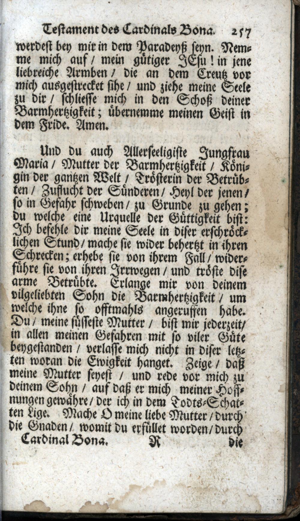 Handleitung zum Himmel Die auserlösneste Lehren H. H. Vätteren, Und Alter Weltweisen, in sich enthaltend / Lateinisch verfasset Durch Joannem, der H. Römisch. Kirchen-Cardinalen Bonam, Des H. Cistercer-Ordens. Nachmals ins Frantzösische übersetzet/ Und mit Beyruckung kurtzen Innhalts/ dessen Lebens-Lauff/ wie auch Testaments oder letzten Willens/ in Druck gegeben/ anjetzo aber aus Lateinisch- und Frantzösischem in reines Teutsche gestellet, auch mit einigen Anmerckungen vermehret von P. Friderico Falzeder, Professen in dem hoch-löbl. Stüfft, und Closter Crembsmünster/ auch der Zeit vorgestellten Seelsorgern der Pfarr ad S. Udalricum in Eberstallzell