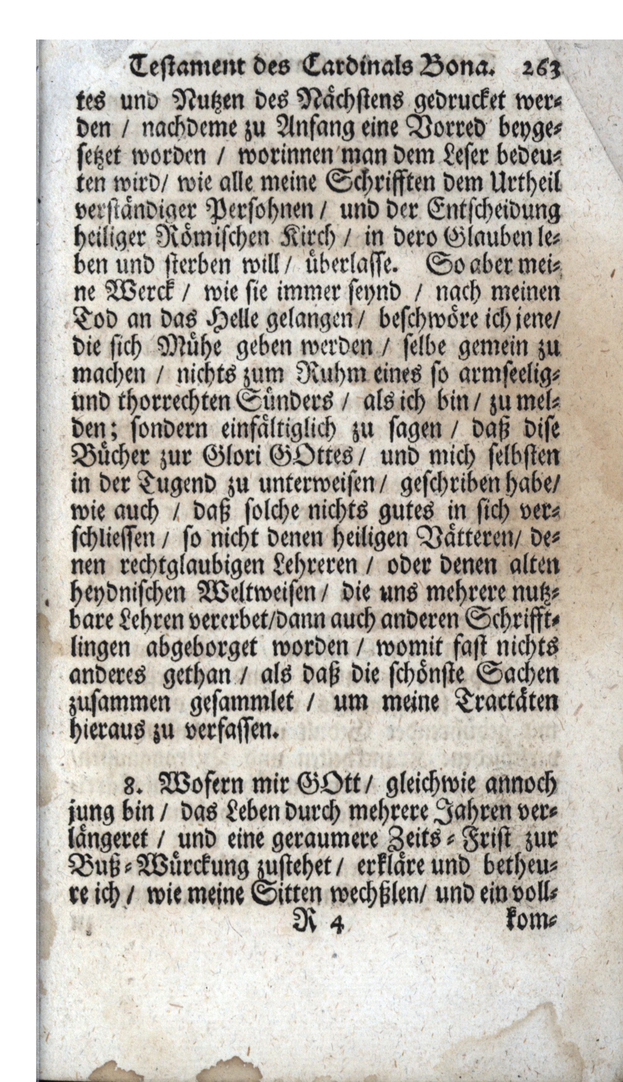 Handleitung zum Himmel Die auserlösneste Lehren H. H. Vätteren, Und Alter Weltweisen, in sich enthaltend / Lateinisch verfasset Durch Joannem, der H. Römisch. Kirchen-Cardinalen Bonam, Des H. Cistercer-Ordens. Nachmals ins Frantzösische übersetzet/ Und mit Beyruckung kurtzen Innhalts/ dessen Lebens-Lauff/ wie auch Testaments oder letzten Willens/ in Druck gegeben/ anjetzo aber aus Lateinisch- und Frantzösischem in reines Teutsche gestellet, auch mit einigen Anmerckungen vermehret von P. Friderico Falzeder, Professen in dem hoch-löbl. Stüfft, und Closter Crembsmünster/ auch der Zeit vorgestellten Seelsorgern der Pfarr ad S. Udalricum in Eberstallzell