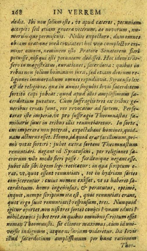 M. Tullii Ciceronis in Q. Caecilium oratio, de accusatore in C. Verrem constituendo: quae Divinatio dicitur. Oratio IV