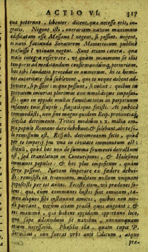 Actionis secundae, seu accusationis in C. Verrem lib. I. Oratio VI