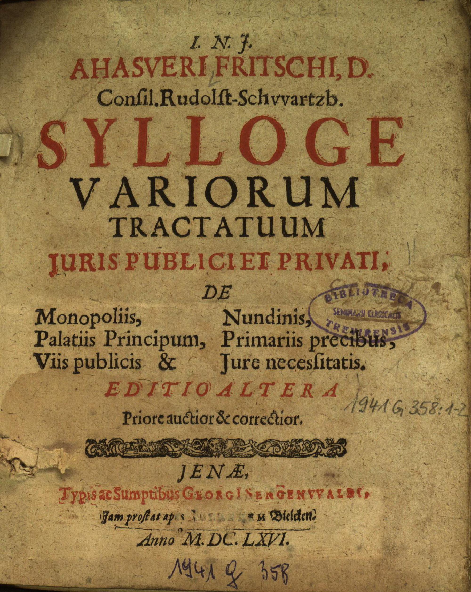 [1] (1666) De Monopoliis, Nundinis, Palatiis Principum, Primariis precibus, Viis publicis & Jure necessitatis