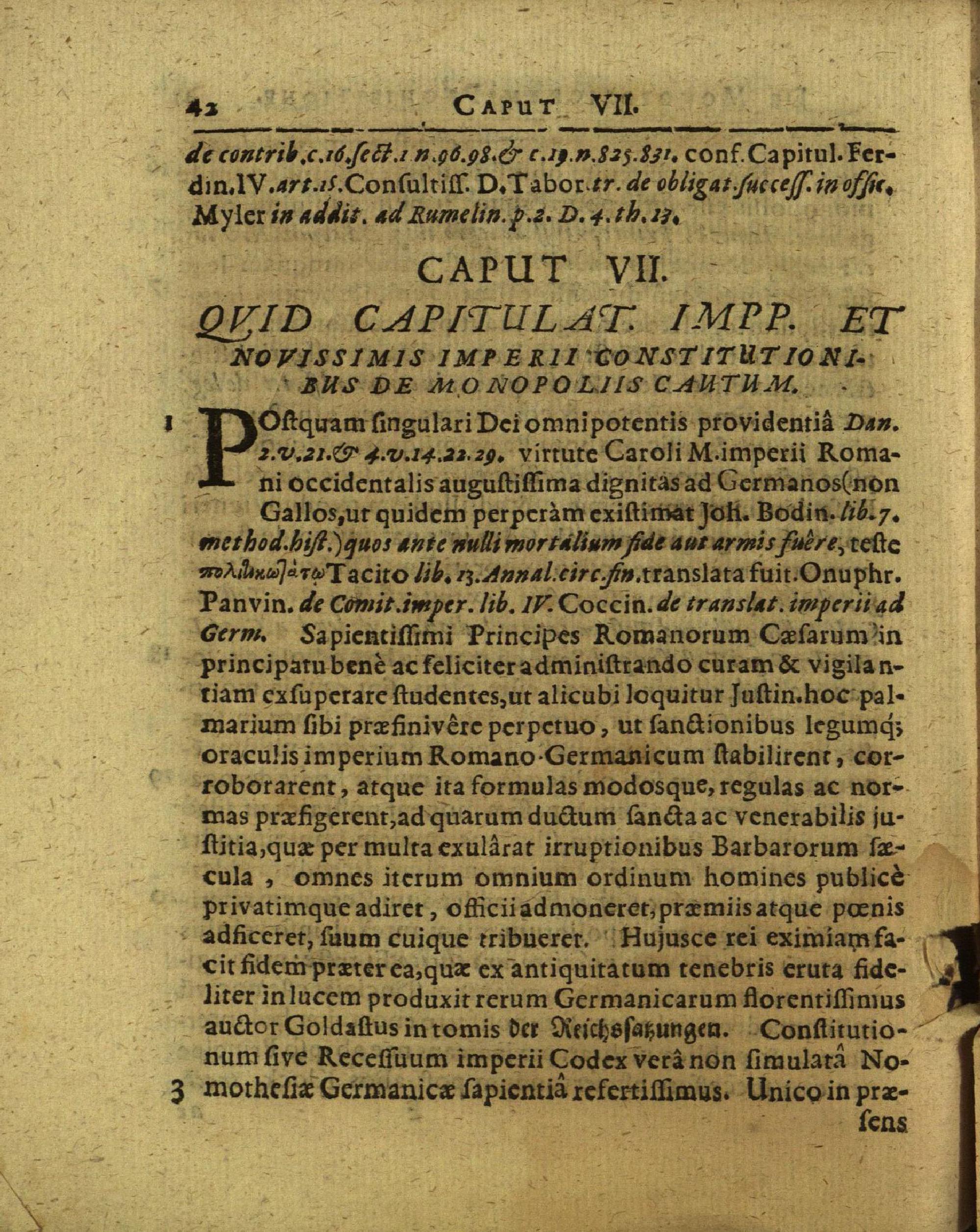 Caput VII: Quid capitulat. imp. et novissimis imperii constitutionibus de monopoliis...