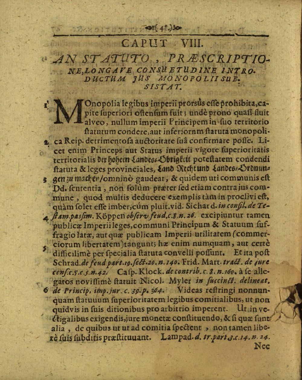 Caput VIII: An statuto, praescriptione, longave sonsuetudine introductum jus monopolii...