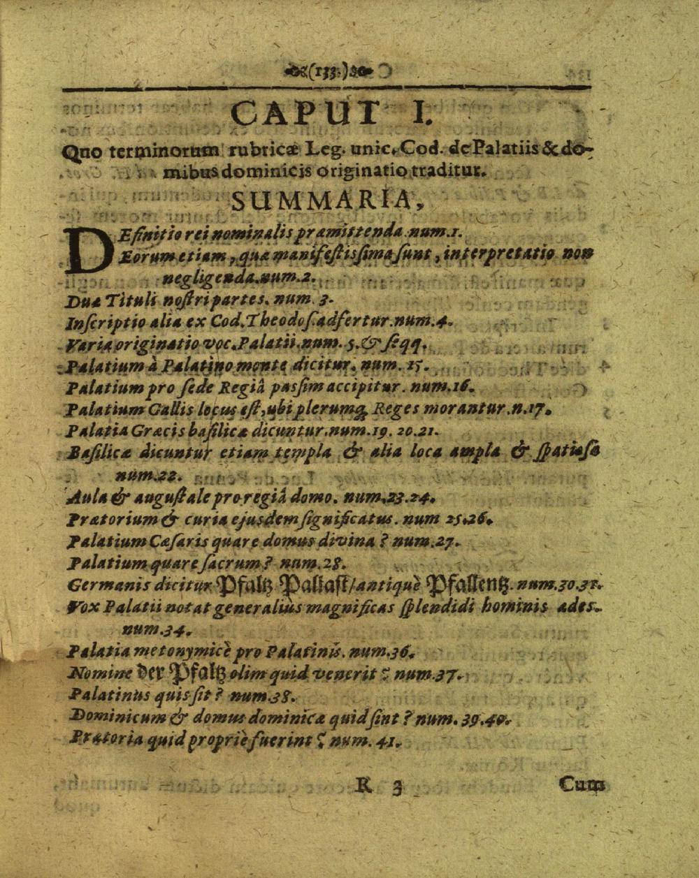 Caput I: Quo terminorum rubricae Leg. unic. Cod. de Palatiis & domibus dominicis...