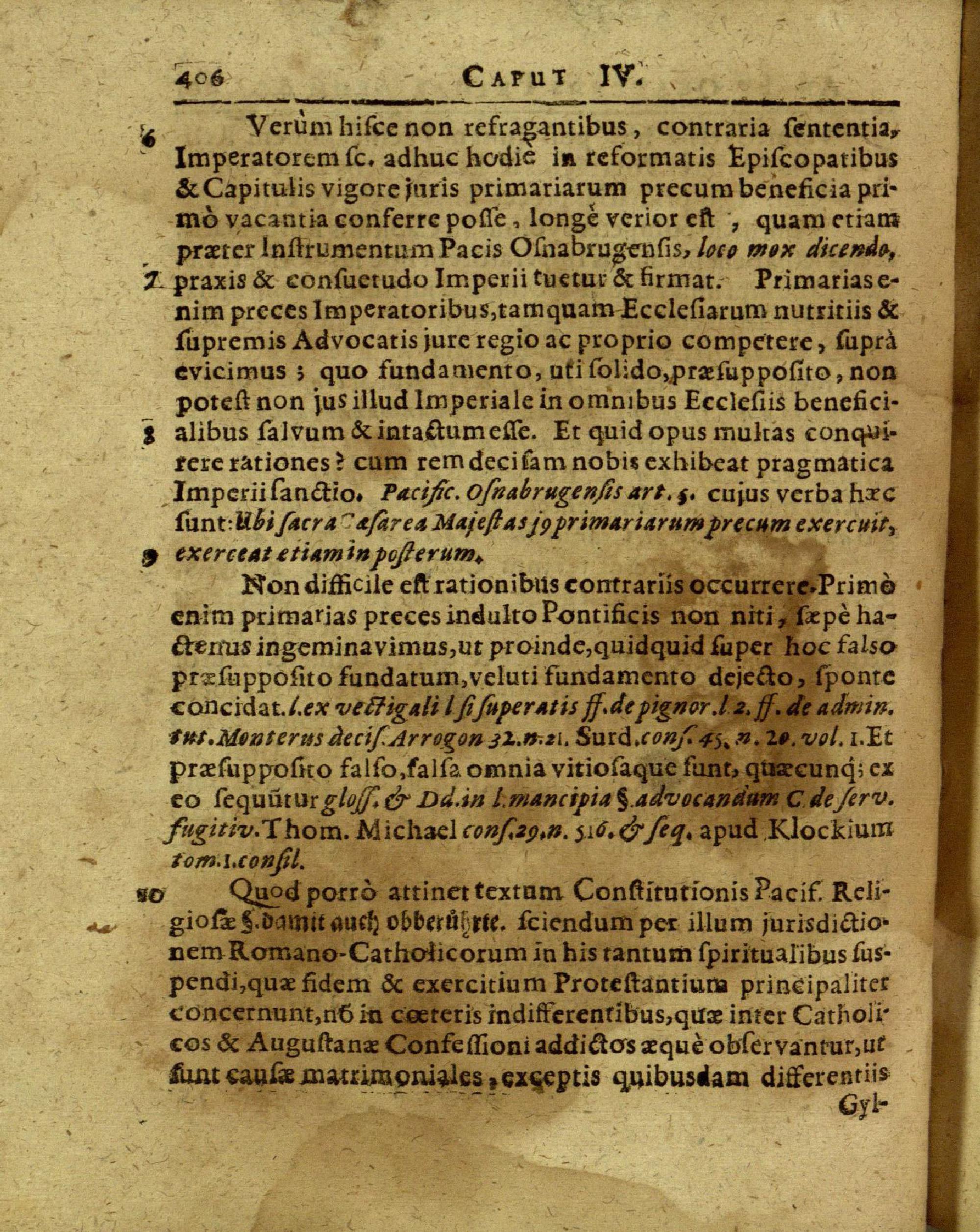 Caput IV: An & quatenus primariarum precum jus Imperatori in Ecclesiis Protestantium...