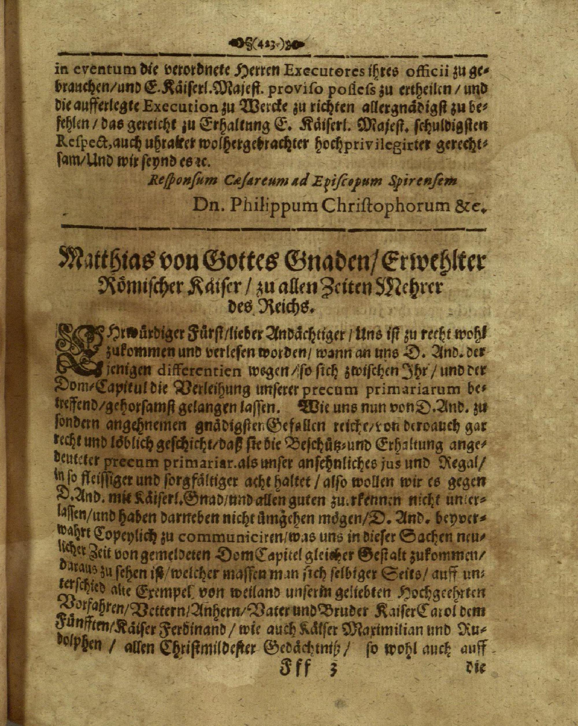 Mantissa III: In causa primariarum precum Imperialium ad D. Imperat. Matthiam et...