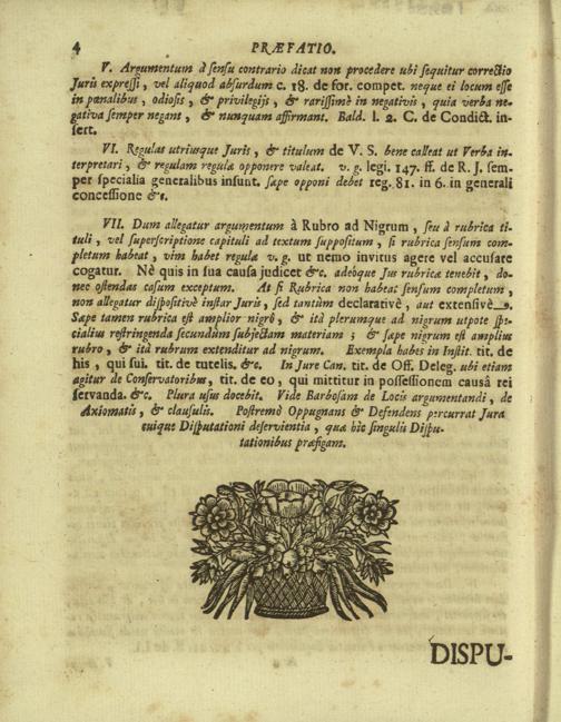 Disputationes Juridicæ Super Præcipuis Juris Justinianæi Controversijs : Ad Faciliorem SS. Canonum Intellectum, & Disputantium Utilitatem Concinnatæ / à P. Remigio à S. Erasmo Religionis Clericorum Regularium Pauperum Matris Dei Scholarum Piarum Professo SS. Canonum Professore actuali, & eodem Præside publicè propugnata à P. Ludovico à S. Anna ejusdem Religionis Sacerdote Professo SS. Canonum Auditore. In Cardinalitio-Dietrichsteiniano Scholarum Piarum Collegio Nicolspurgi Anno Domini 1732. Mense Augusto Die