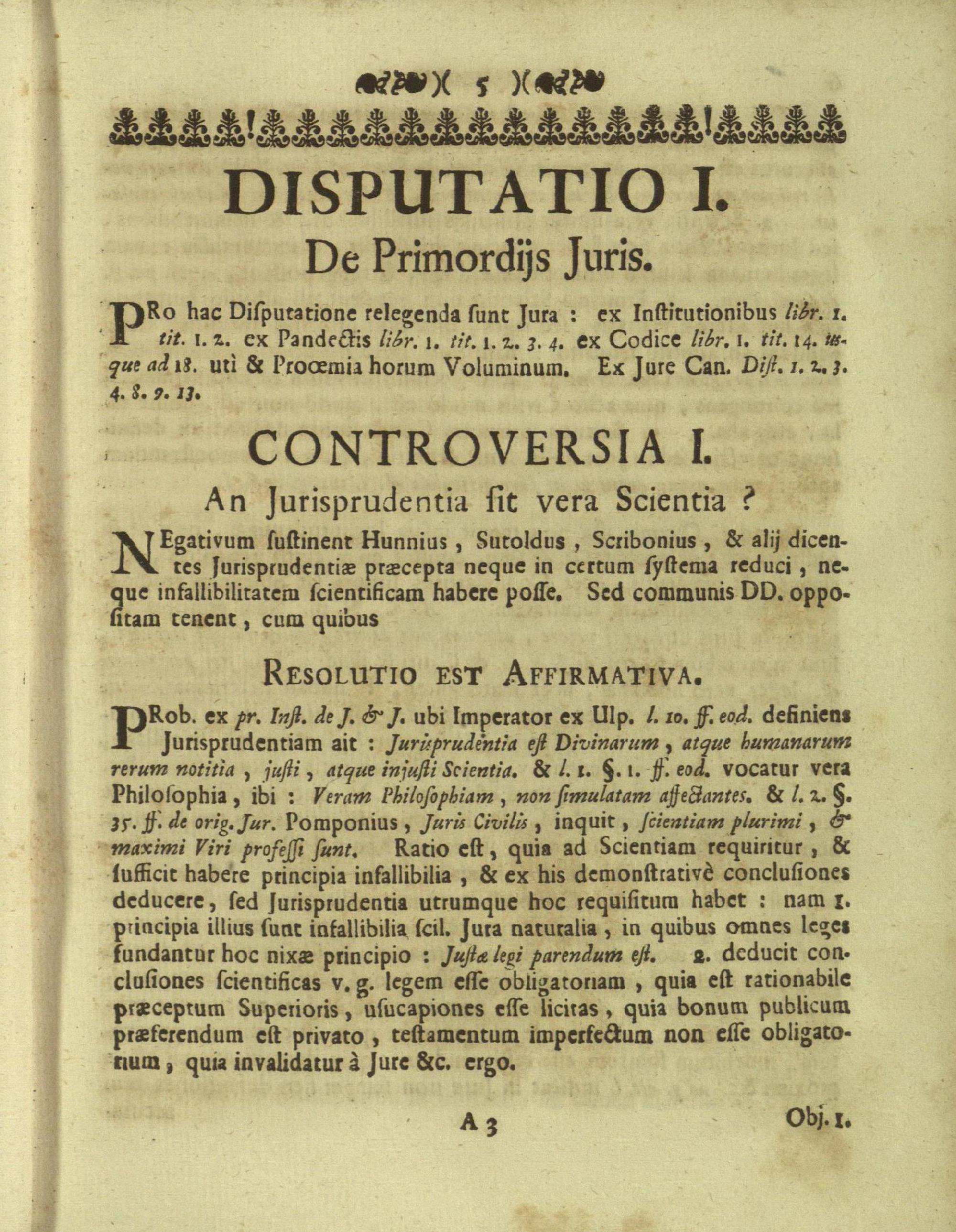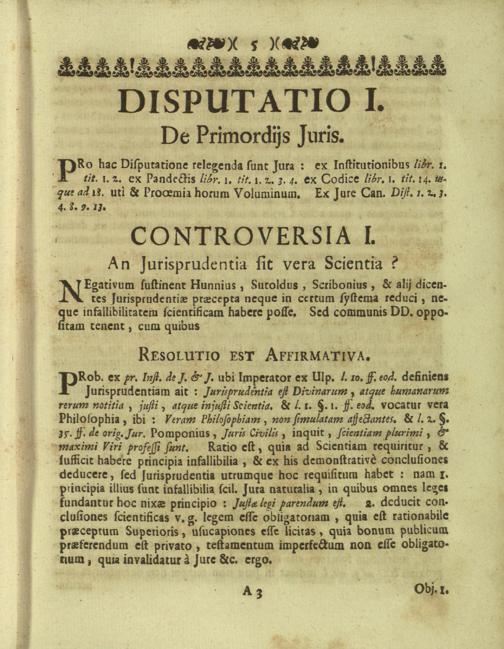 Disputationes Juridicæ Super Præcipuis Juris Justinianæi Controversijs : Ad Faciliorem SS. Canonum Intellectum, & Disputantium Utilitatem Concinnatæ / à P. Remigio à S. Erasmo Religionis Clericorum Regularium Pauperum Matris Dei Scholarum Piarum Professo SS. Canonum Professore actuali, & eodem Præside publicè propugnata à P. Ludovico à S. Anna ejusdem Religionis Sacerdote Professo SS. Canonum Auditore. In Cardinalitio-Dietrichsteiniano Scholarum Piarum Collegio Nicolspurgi Anno Domini 1732. Mense Augusto Die