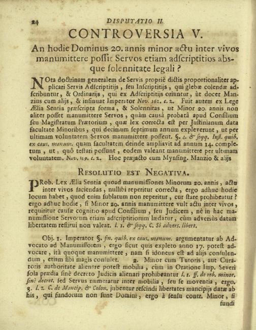 Disputationes Juridicæ Super Præcipuis Juris Justinianæi Controversijs : Ad Faciliorem SS. Canonum Intellectum, & Disputantium Utilitatem Concinnatæ / à P. Remigio à S. Erasmo Religionis Clericorum Regularium Pauperum Matris Dei Scholarum Piarum Professo SS. Canonum Professore actuali, & eodem Præside publicè propugnata à P. Ludovico à S. Anna ejusdem Religionis Sacerdote Professo SS. Canonum Auditore. In Cardinalitio-Dietrichsteiniano Scholarum Piarum Collegio Nicolspurgi Anno Domini 1732. Mense Augusto Die