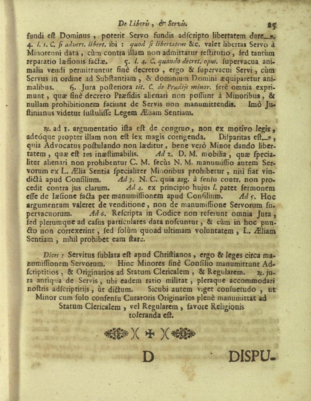 Disputationes Juridicæ Super Præcipuis Juris Justinianæi Controversijs : Ad Faciliorem SS. Canonum Intellectum, & Disputantium Utilitatem Concinnatæ / à P. Remigio à S. Erasmo Religionis Clericorum Regularium Pauperum Matris Dei Scholarum Piarum Professo SS. Canonum Professore actuali, & eodem Præside publicè propugnata à P. Ludovico à S. Anna ejusdem Religionis Sacerdote Professo SS. Canonum Auditore. In Cardinalitio-Dietrichsteiniano Scholarum Piarum Collegio Nicolspurgi Anno Domini 1732. Mense Augusto Die