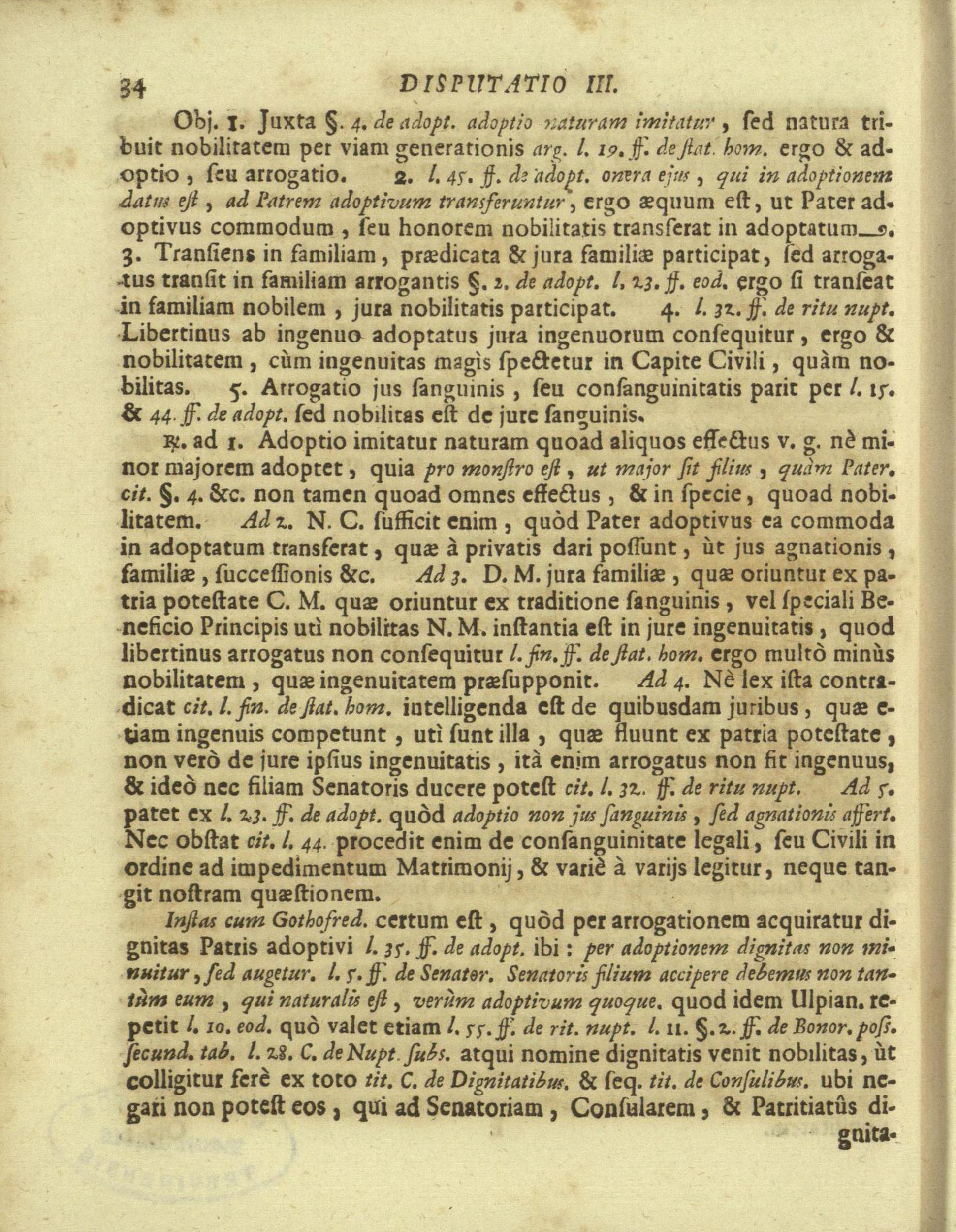Disputationes Juridicæ Super Præcipuis Juris Justinianæi Controversijs : Ad Faciliorem SS. Canonum Intellectum, & Disputantium Utilitatem Concinnatæ / à P. Remigio à S. Erasmo Religionis Clericorum Regularium Pauperum Matris Dei Scholarum Piarum Professo SS. Canonum Professore actuali, & eodem Præside publicè propugnata à P. Ludovico à S. Anna ejusdem Religionis Sacerdote Professo SS. Canonum Auditore. In Cardinalitio-Dietrichsteiniano Scholarum Piarum Collegio Nicolspurgi Anno Domini 1732. Mense Augusto Die