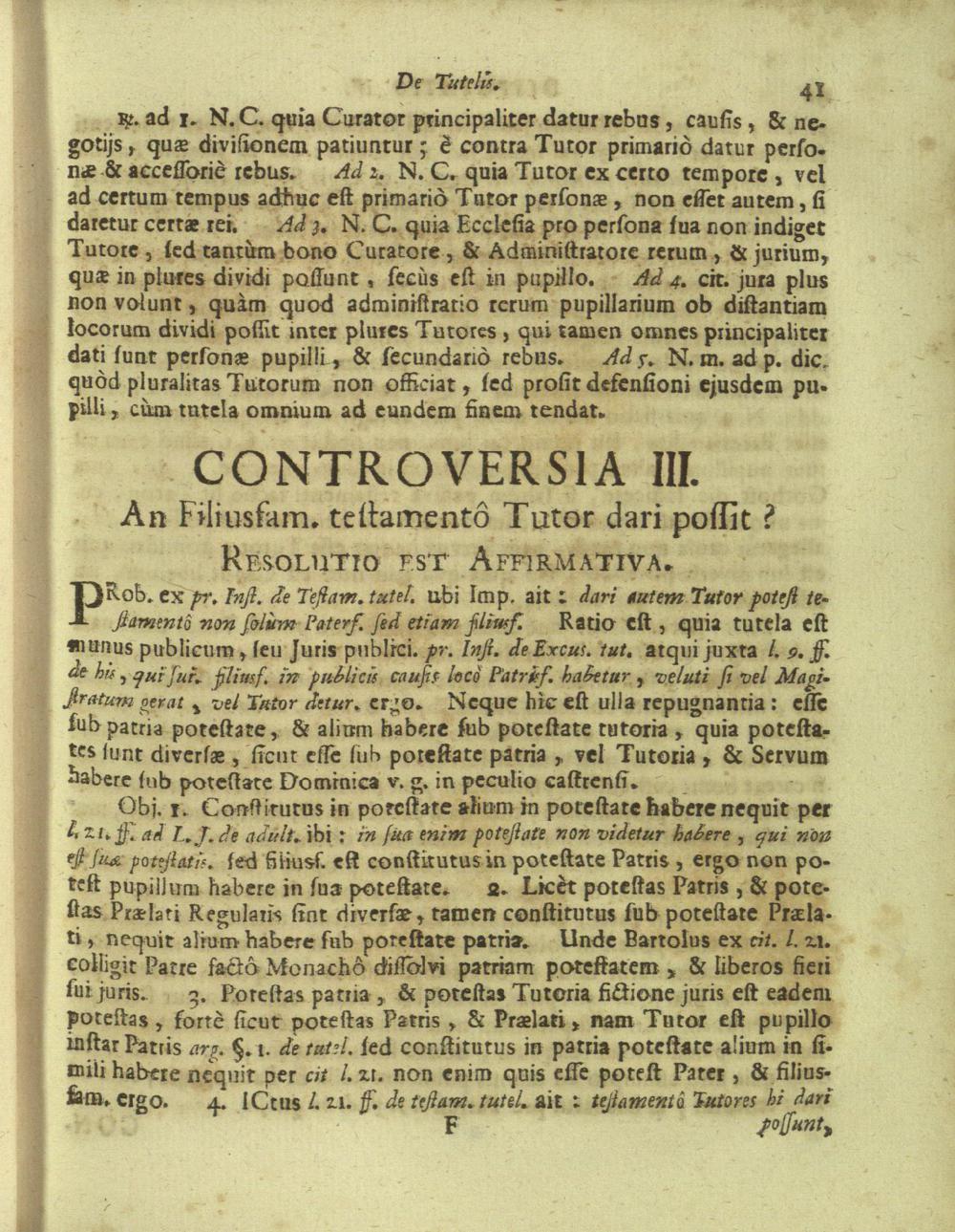 Disputationes Juridicæ Super Præcipuis Juris Justinianæi Controversijs : Ad Faciliorem SS. Canonum Intellectum, & Disputantium Utilitatem Concinnatæ / à P. Remigio à S. Erasmo Religionis Clericorum Regularium Pauperum Matris Dei Scholarum Piarum Professo SS. Canonum Professore actuali, & eodem Præside publicè propugnata à P. Ludovico à S. Anna ejusdem Religionis Sacerdote Professo SS. Canonum Auditore. In Cardinalitio-Dietrichsteiniano Scholarum Piarum Collegio Nicolspurgi Anno Domini 1732. Mense Augusto Die