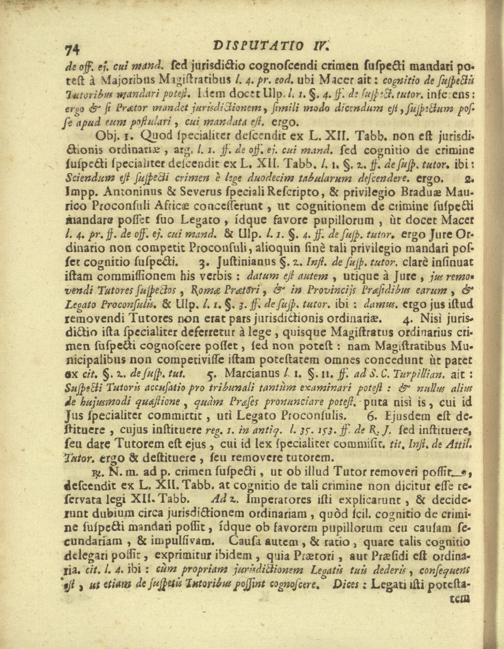 Disputationes Juridicæ Super Præcipuis Juris Justinianæi Controversijs : Ad Faciliorem SS. Canonum Intellectum, & Disputantium Utilitatem Concinnatæ / à P. Remigio à S. Erasmo Religionis Clericorum Regularium Pauperum Matris Dei Scholarum Piarum Professo SS. Canonum Professore actuali, & eodem Præside publicè propugnata à P. Ludovico à S. Anna ejusdem Religionis Sacerdote Professo SS. Canonum Auditore. In Cardinalitio-Dietrichsteiniano Scholarum Piarum Collegio Nicolspurgi Anno Domini 1732. Mense Augusto Die
