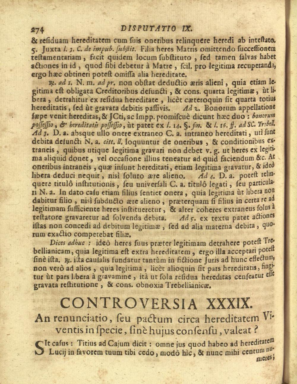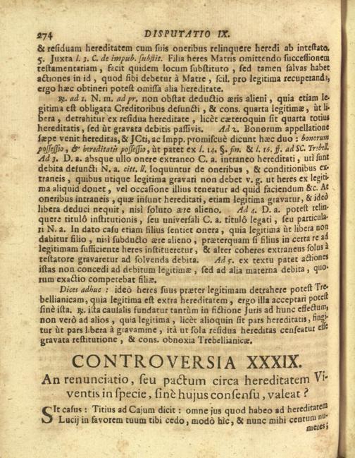 Disputationes Juridicæ Super Præcipuis Juris Justinianæi Controversijs : Ad Faciliorem SS. Canonum Intellectum, & Disputantium Utilitatem Concinnatæ / à P. Remigio à S. Erasmo Religionis Clericorum Regularium Pauperum Matris Dei Scholarum Piarum Professo SS. Canonum Professore actuali, & eodem Præside publicè propugnata à P. Ludovico à S. Anna ejusdem Religionis Sacerdote Professo SS. Canonum Auditore. In Cardinalitio-Dietrichsteiniano Scholarum Piarum Collegio Nicolspurgi Anno Domini 1732. Mense Augusto Die