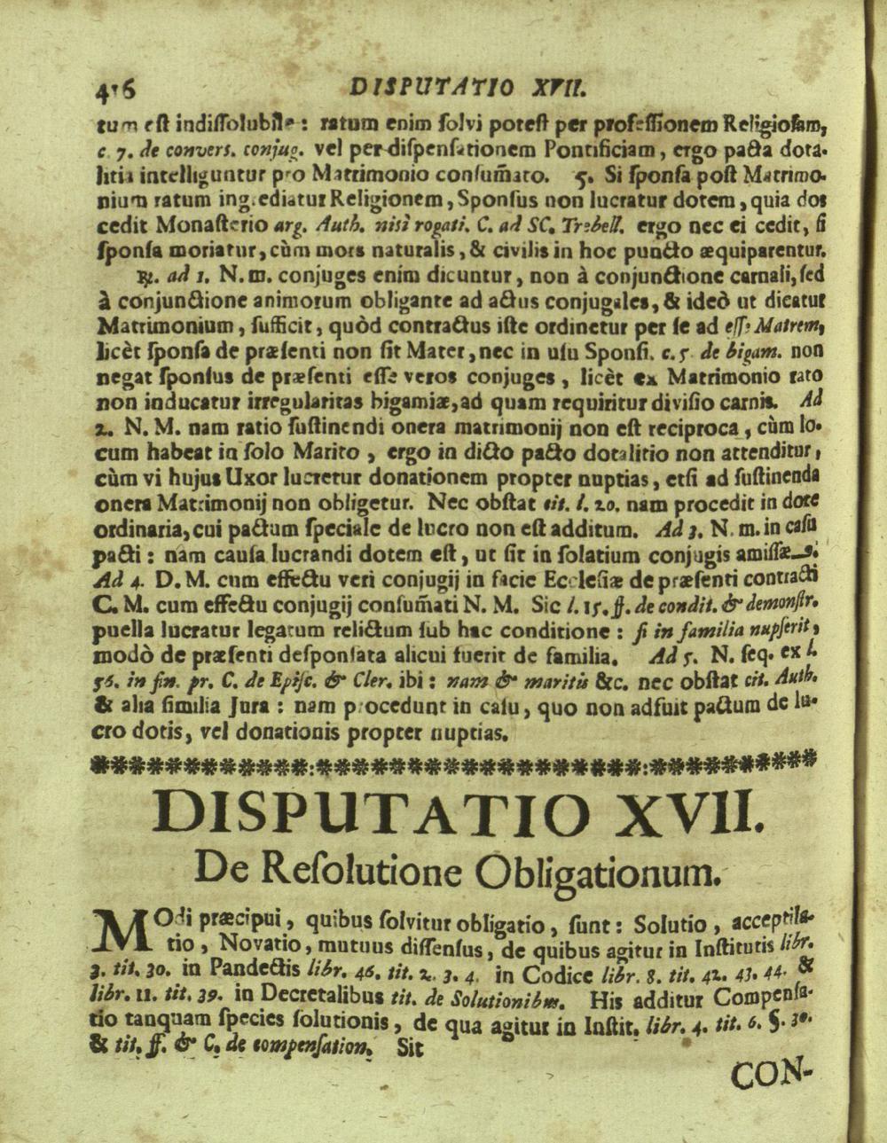 Disputationes Juridicæ Super Præcipuis Juris Justinianæi Controversijs : Ad Faciliorem SS. Canonum Intellectum, & Disputantium Utilitatem Concinnatæ / à P. Remigio à S. Erasmo Religionis Clericorum Regularium Pauperum Matris Dei Scholarum Piarum Professo SS. Canonum Professore actuali, & eodem Præside publicè propugnata à P. Ludovico à S. Anna ejusdem Religionis Sacerdote Professo SS. Canonum Auditore. In Cardinalitio-Dietrichsteiniano Scholarum Piarum Collegio Nicolspurgi Anno Domini 1732. Mense Augusto Die