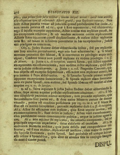 Disputationes Juridicæ Super Præcipuis Juris Justinianæi Controversijs : Ad Faciliorem SS. Canonum Intellectum, & Disputantium Utilitatem Concinnatæ / à P. Remigio à S. Erasmo Religionis Clericorum Regularium Pauperum Matris Dei Scholarum Piarum Professo SS. Canonum Professore actuali, & eodem Præside publicè propugnata à P. Ludovico à S. Anna ejusdem Religionis Sacerdote Professo SS. Canonum Auditore. In Cardinalitio-Dietrichsteiniano Scholarum Piarum Collegio Nicolspurgi Anno Domini 1732. Mense Augusto Die