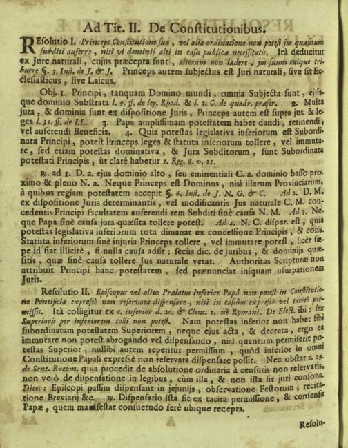 Resolutiones Juris Canonici / Præside P. Remigio à S. Erasmo Religionis Clericorum Regul. Paup. Matris Dei Scholarum Piarum Professo, SS. Canonum Professore actuali Publicè disputata à PP. Colomanno à S. Radegunde, Alexio à S. Josepho, Jaroslao à S. Alexio, Ejusdem Religionis Professis, & SS. Canonum Auditoribus. In Cardinalitio-Dietrichsteiniano Scholar. Piar. Collegio Nicolspurgi Anno 1730. Mense