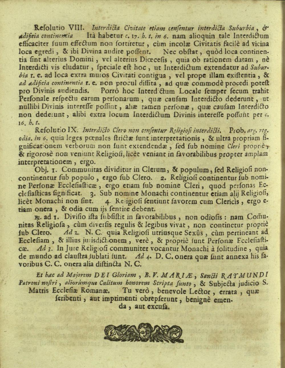 Resolutiones Juris Canonici / Præside P. Remigio à S. Erasmo Religionis Clericorum Regul. Paup. Matris Dei Scholarum Piarum Professo, SS. Canonum Professore actuali Publicè disputata à PP. Colomanno à S. Radegunde, Alexio à S. Josepho, Jaroslao à S. Alexio, Ejusdem Religionis Professis, & SS. Canonum Auditoribus. In Cardinalitio-Dietrichsteiniano Scholar. Piar. Collegio Nicolspurgi Anno 1730. Mense