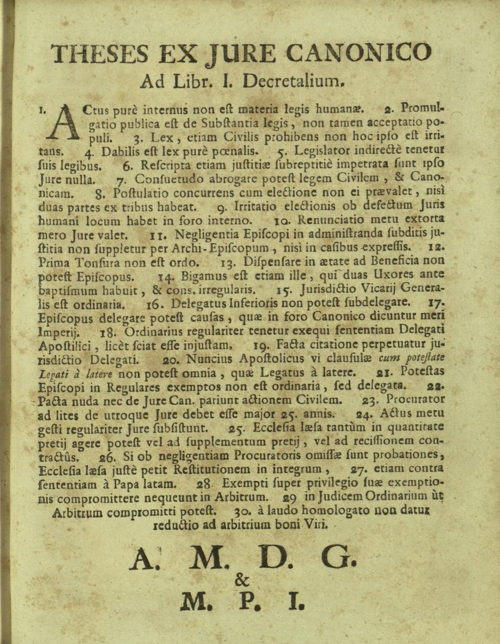 Relationes Historico-Canonicæ De Instituto Clericorum Regularium Pauperum Matris Dei Scholarum Piarum Pro Anno Sæculari Collegii Nicolspurgensis : Ad Modum Reverendo, Ac Religiosissimo P. Basilio á S. Antonio per Germaniam Præposito Provinciali A R. P. Alexio à S. Andrea Rectori R. P. Ignatio à S. Jacobo Ex-Assistenti Generali R. P. Joachimo à S. Adalberto Ex-Provinciali R. P. Casimiro à S. Bartholomæo Vice-Rectori totíque Religiosæ Familiæ Nicolspurgensi in submissæ venerationis, & gratulationis signum oblatæ / à Canonistis Nicolspurgensibus PP. Ludovico à S. Anna, Narcisso à S. Rosa, Florido à S. Hiacyntho, Venantio à S. Huberto, Sigismundo à S. Ludovico, & Antonio à S. Patritio cum annexis Thesibus ex utroque Jure ab ijsdem propugnandis Præside P. Remigio à S. Erasmo, Ejusdem Instituti Professo, & SS. Canonum Professore actuali In eodem Cardinalitio-Dietrichsteiniano Scholarum Piarum Collegio an. 1731. Junio Die