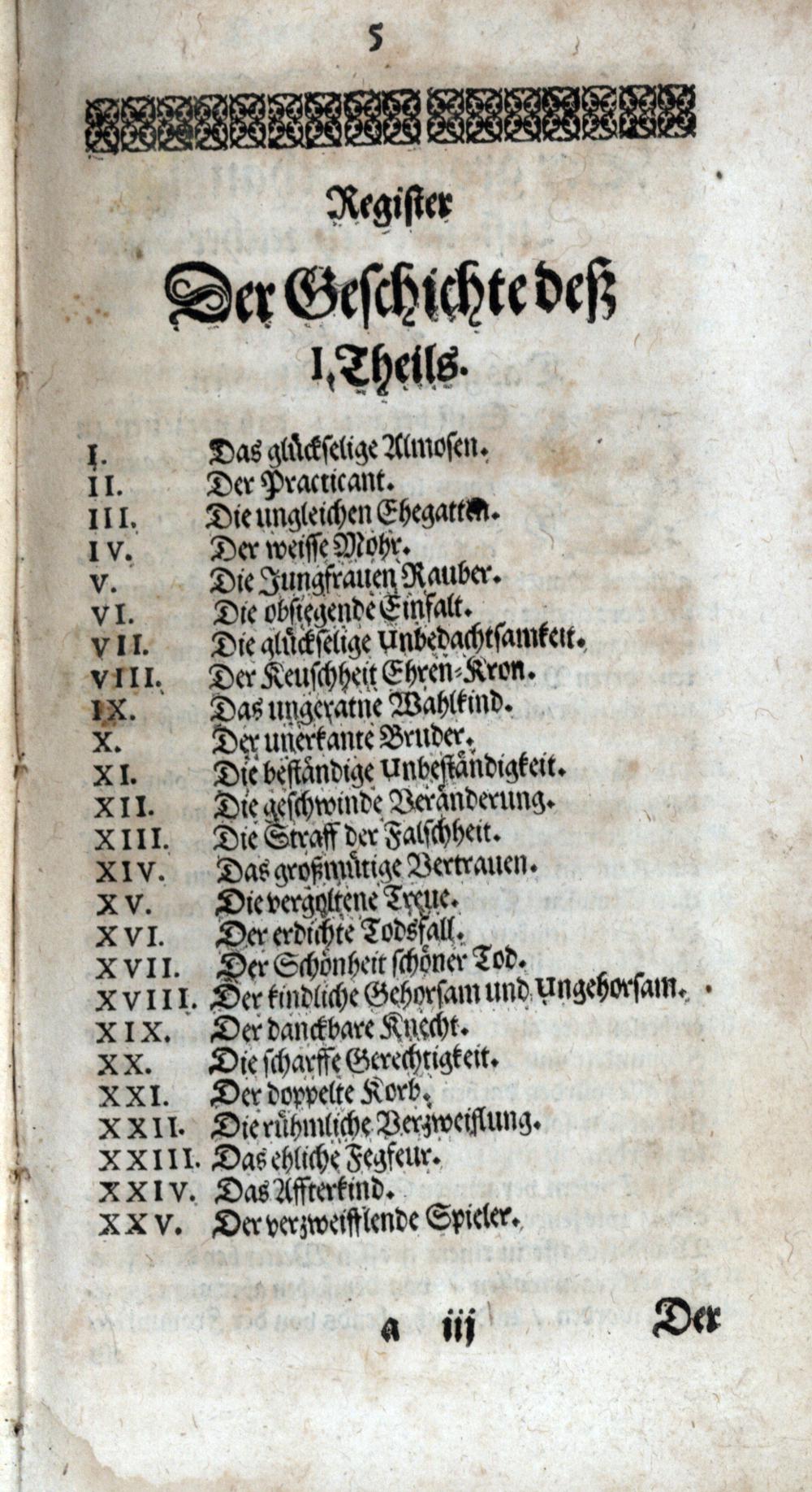 Register der Geschichte deß I. Theils