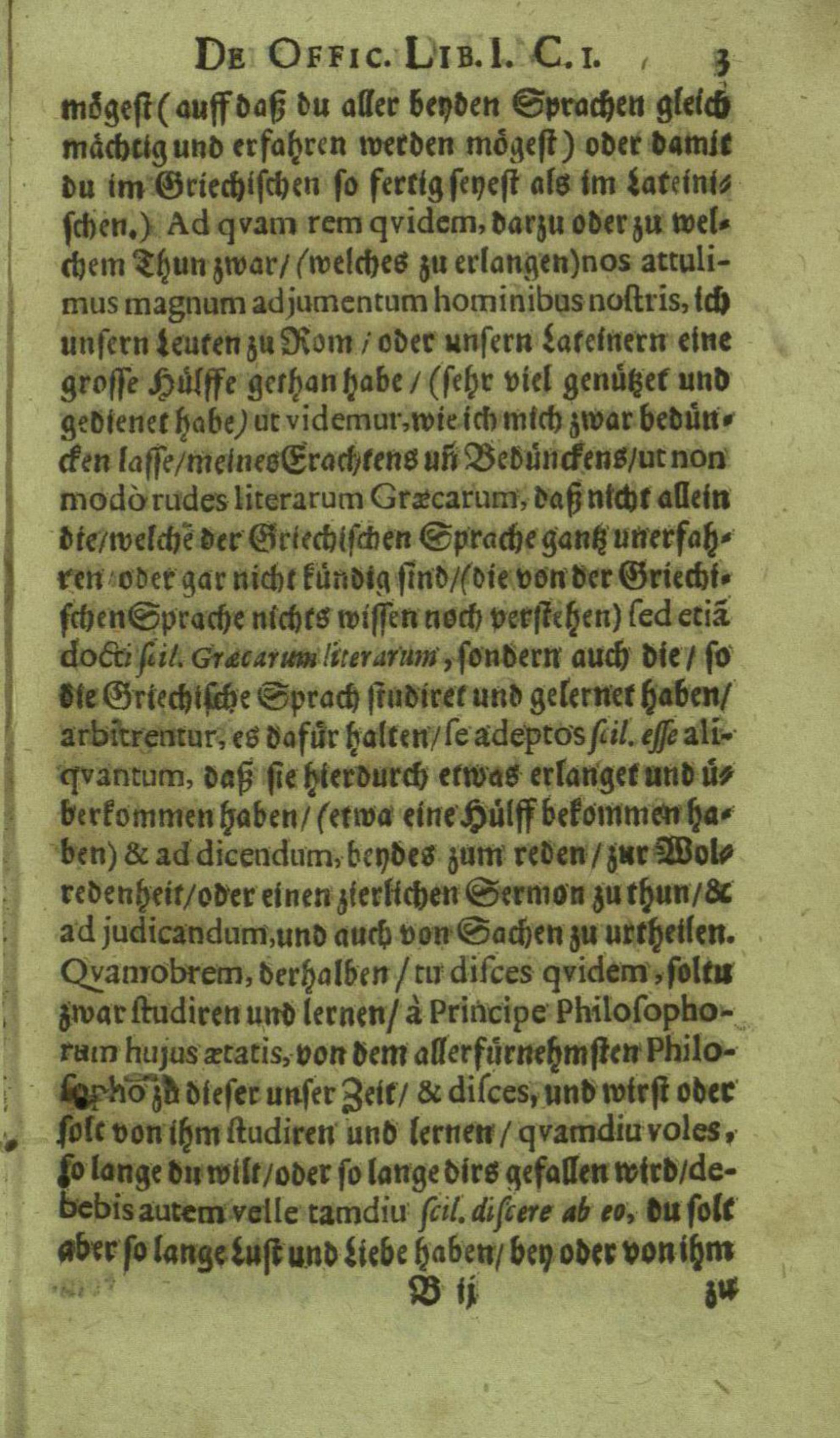 M. Tullii Ciceronis De Officiis, Id est: De vita, moribus, consiliis & actionibus hominis rectè conformandis & regendis Ad Marcum Filium : Libri Tres / Ab innumeris vulgarium editionem mendis crassissimis liberati, & in gratiam & commoditatem studiosae juventutis interpretatione germanicâ perspicuâ & fideli expositi à M. Johanne Rhenio