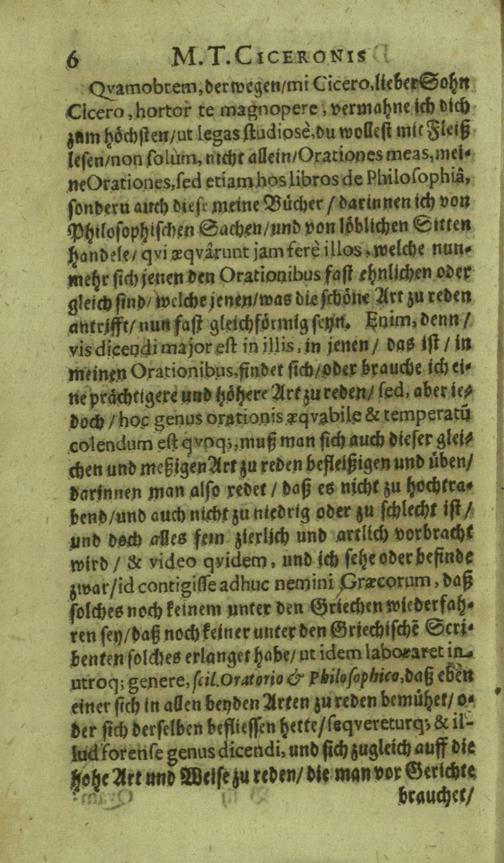 M. Tullii Ciceronis De Officiis, Id est: De vita, moribus, consiliis & actionibus hominis rectè conformandis & regendis Ad Marcum Filium : Libri Tres / Ab innumeris vulgarium editionem mendis crassissimis liberati, & in gratiam & commoditatem studiosae juventutis interpretatione germanicâ perspicuâ & fideli expositi à M. Johanne Rhenio