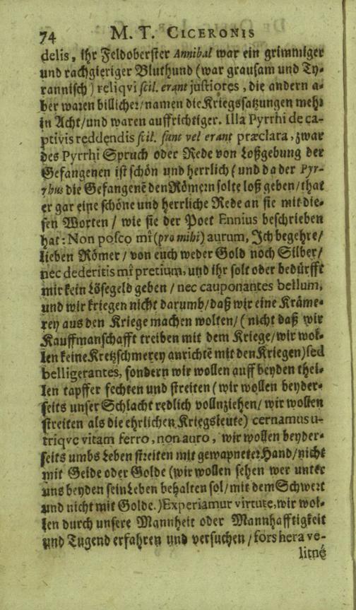 M. Tullii Ciceronis De Officiis, Id est: De vita, moribus, consiliis & actionibus hominis rectè conformandis & regendis Ad Marcum Filium : Libri Tres / Ab innumeris vulgarium editionem mendis crassissimis liberati, & in gratiam & commoditatem studiosae juventutis interpretatione germanicâ perspicuâ & fideli expositi à M. Johanne Rhenio