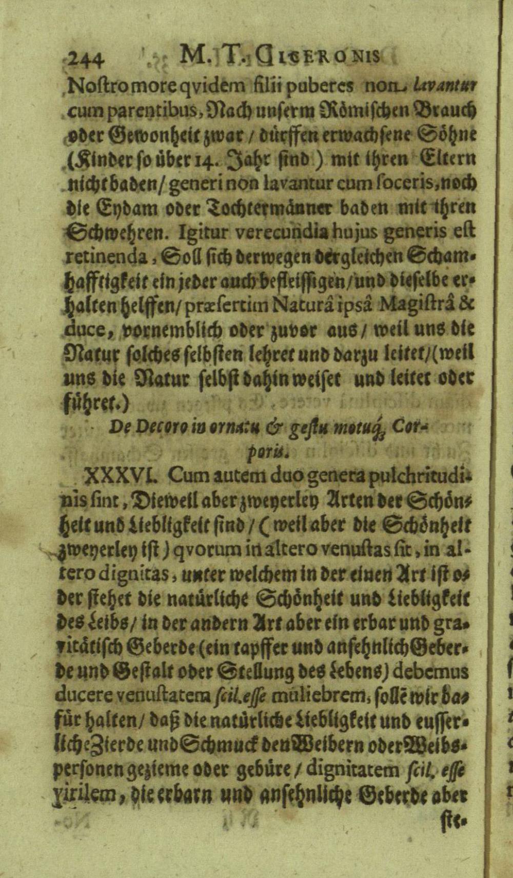 M. Tullii Ciceronis De Officiis, Id est: De vita, moribus, consiliis & actionibus hominis rectè conformandis & regendis Ad Marcum Filium : Libri Tres / Ab innumeris vulgarium editionem mendis crassissimis liberati, & in gratiam & commoditatem studiosae juventutis interpretatione germanicâ perspicuâ & fideli expositi à M. Johanne Rhenio