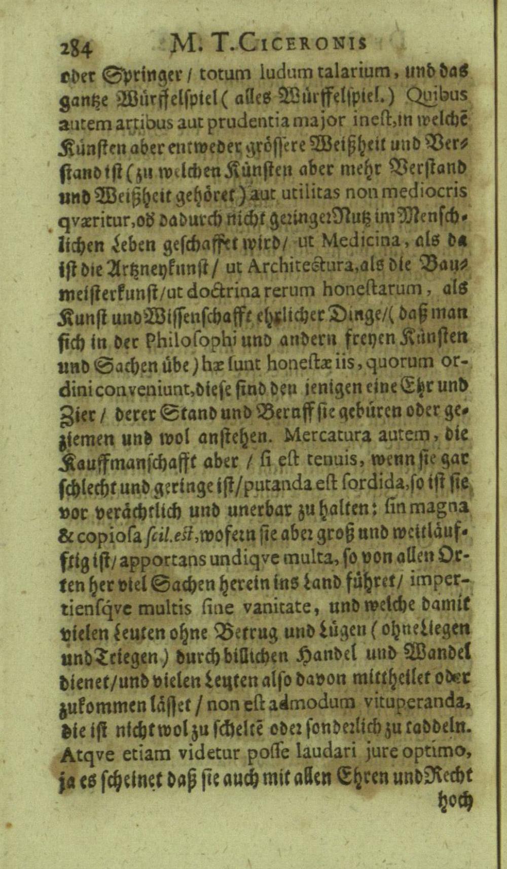 M. Tullii Ciceronis De Officiis, Id est: De vita, moribus, consiliis & actionibus hominis rectè conformandis & regendis Ad Marcum Filium : Libri Tres / Ab innumeris vulgarium editionem mendis crassissimis liberati, & in gratiam & commoditatem studiosae juventutis interpretatione germanicâ perspicuâ & fideli expositi à M. Johanne Rhenio