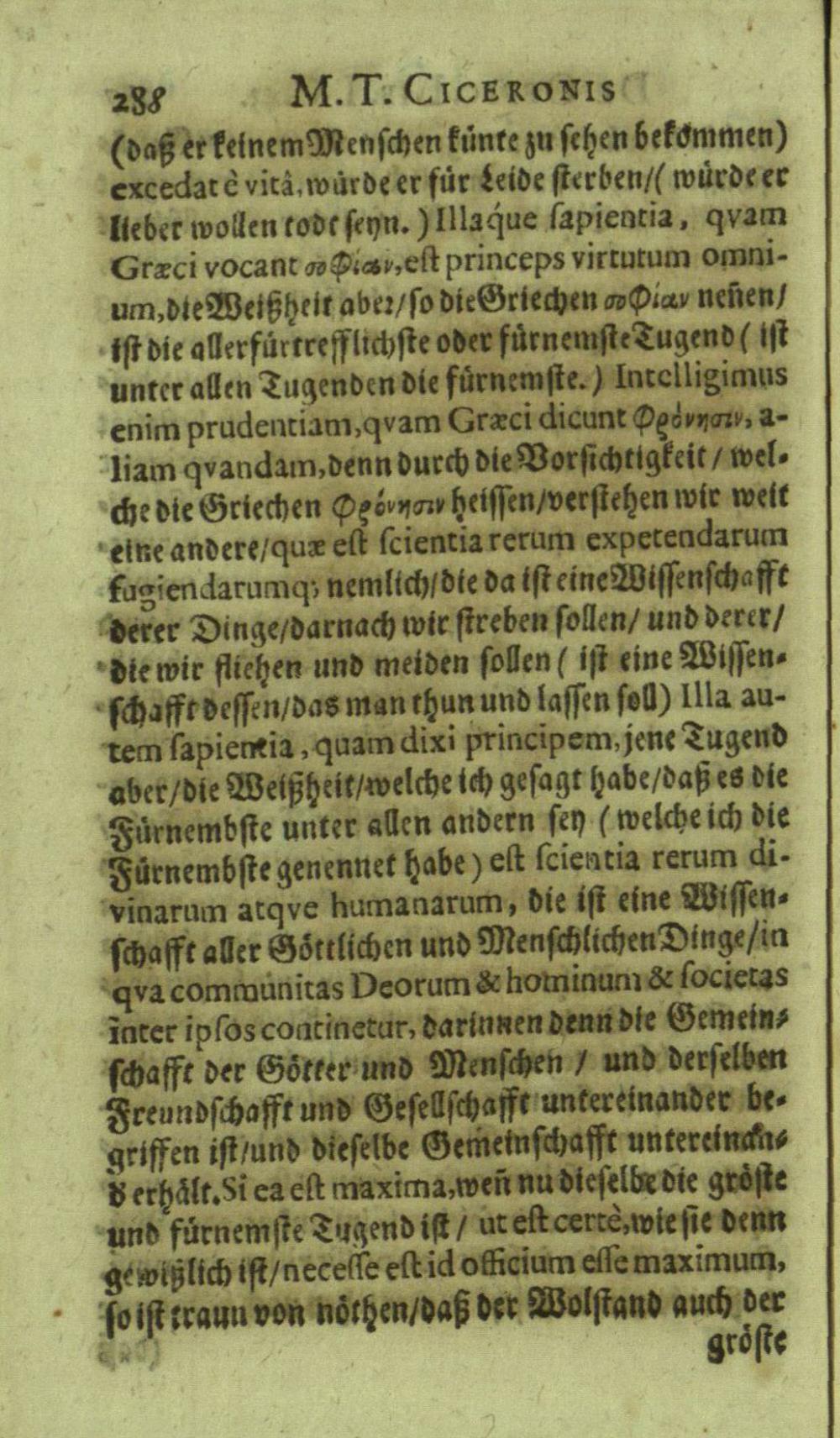 M. Tullii Ciceronis De Officiis, Id est: De vita, moribus, consiliis & actionibus hominis rectè conformandis & regendis Ad Marcum Filium : Libri Tres / Ab innumeris vulgarium editionem mendis crassissimis liberati, & in gratiam & commoditatem studiosae juventutis interpretatione germanicâ perspicuâ & fideli expositi à M. Johanne Rhenio