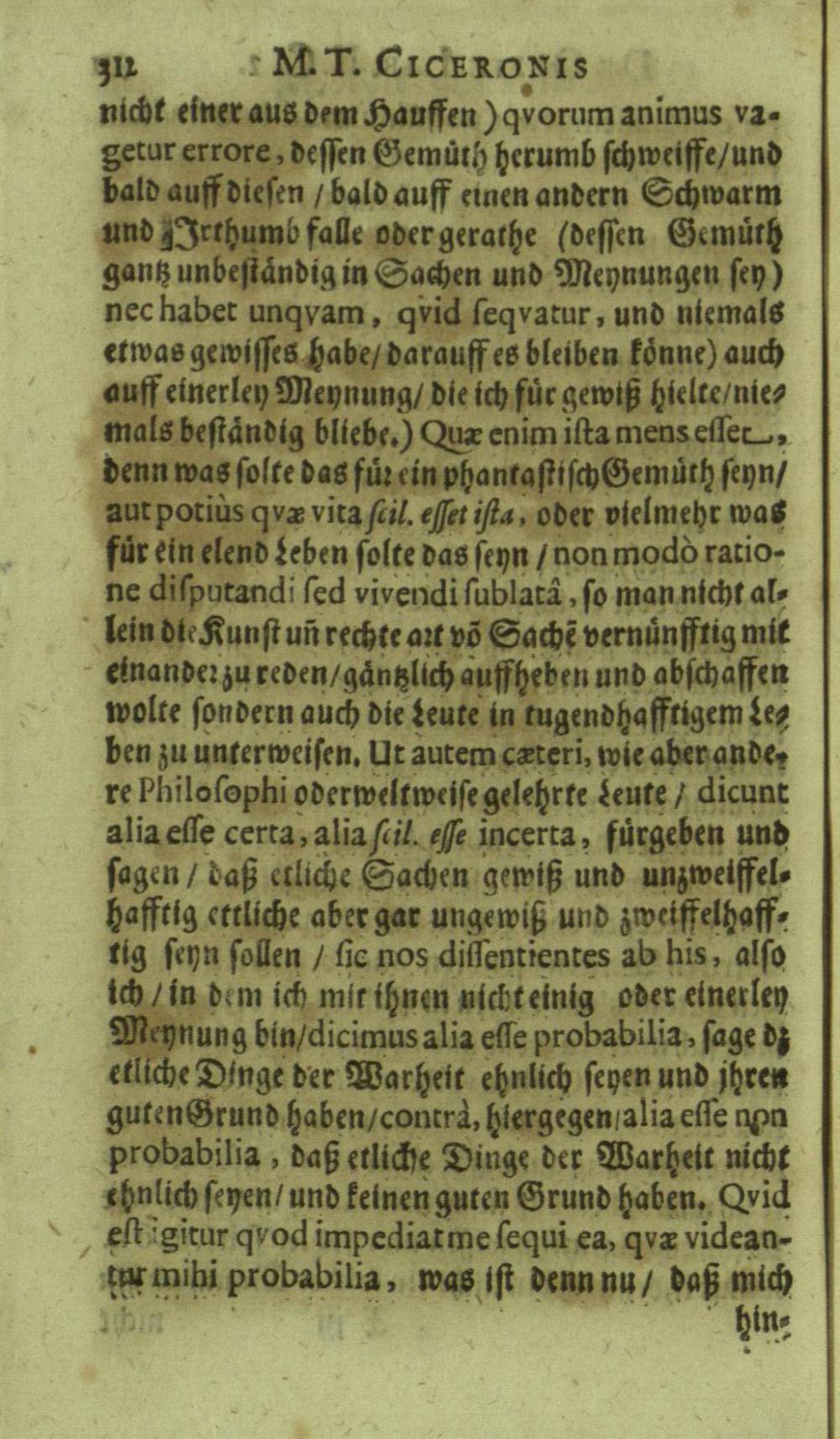 M. Tullii Ciceronis De Officiis, Id est: De vita, moribus, consiliis & actionibus hominis rectè conformandis & regendis Ad Marcum Filium : Libri Tres / Ab innumeris vulgarium editionem mendis crassissimis liberati, & in gratiam & commoditatem studiosae juventutis interpretatione germanicâ perspicuâ & fideli expositi à M. Johanne Rhenio