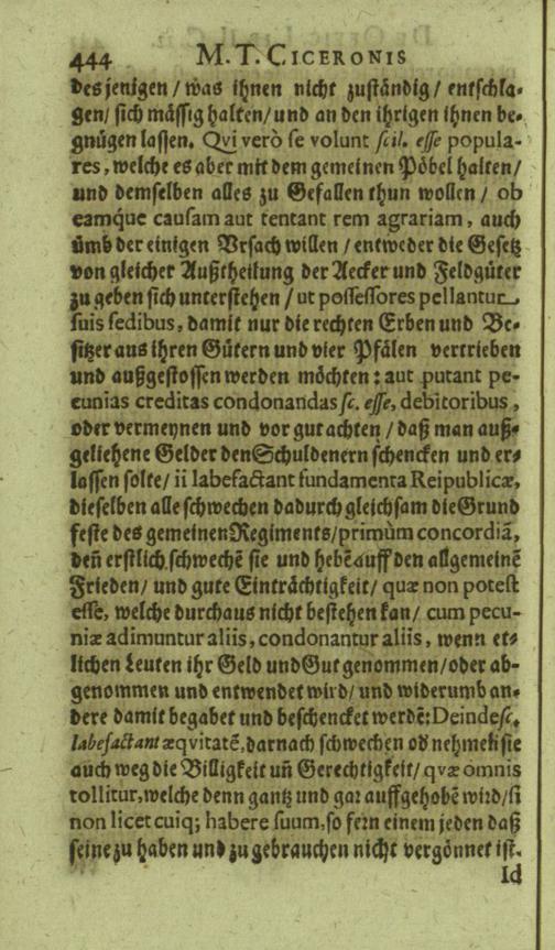 M. Tullii Ciceronis De Officiis, Id est: De vita, moribus, consiliis & actionibus hominis rectè conformandis & regendis Ad Marcum Filium : Libri Tres / Ab innumeris vulgarium editionem mendis crassissimis liberati, & in gratiam & commoditatem studiosae juventutis interpretatione germanicâ perspicuâ & fideli expositi à M. Johanne Rhenio