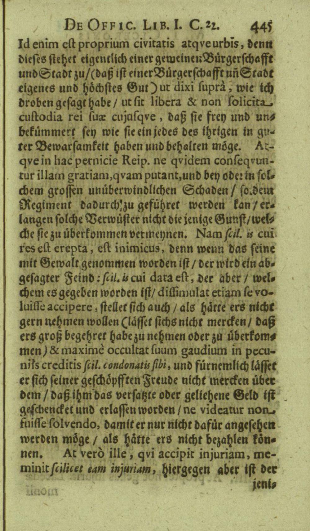 M. Tullii Ciceronis De Officiis, Id est: De vita, moribus, consiliis & actionibus hominis rectè conformandis & regendis Ad Marcum Filium : Libri Tres / Ab innumeris vulgarium editionem mendis crassissimis liberati, & in gratiam & commoditatem studiosae juventutis interpretatione germanicâ perspicuâ & fideli expositi à M. Johanne Rhenio