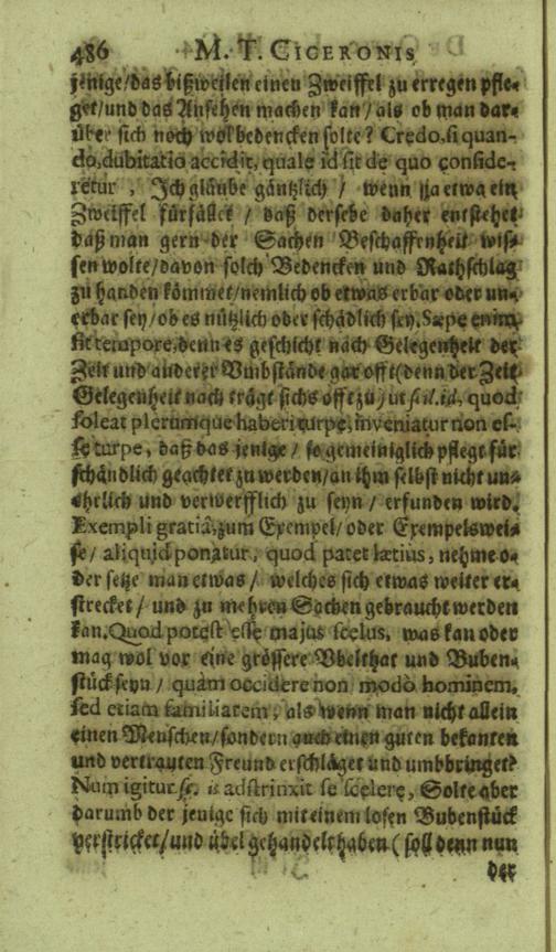 M. Tullii Ciceronis De Officiis, Id est: De vita, moribus, consiliis & actionibus hominis rectè conformandis & regendis Ad Marcum Filium : Libri Tres / Ab innumeris vulgarium editionem mendis crassissimis liberati, & in gratiam & commoditatem studiosae juventutis interpretatione germanicâ perspicuâ & fideli expositi à M. Johanne Rhenio