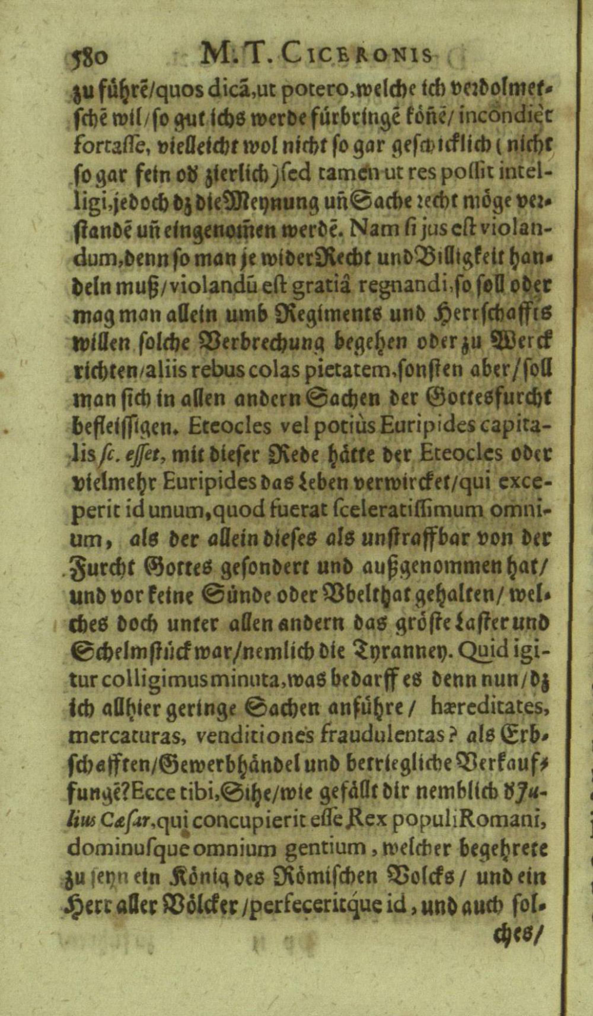M. Tullii Ciceronis De Officiis, Id est: De vita, moribus, consiliis & actionibus hominis rectè conformandis & regendis Ad Marcum Filium : Libri Tres / Ab innumeris vulgarium editionem mendis crassissimis liberati, & in gratiam & commoditatem studiosae juventutis interpretatione germanicâ perspicuâ & fideli expositi à M. Johanne Rhenio