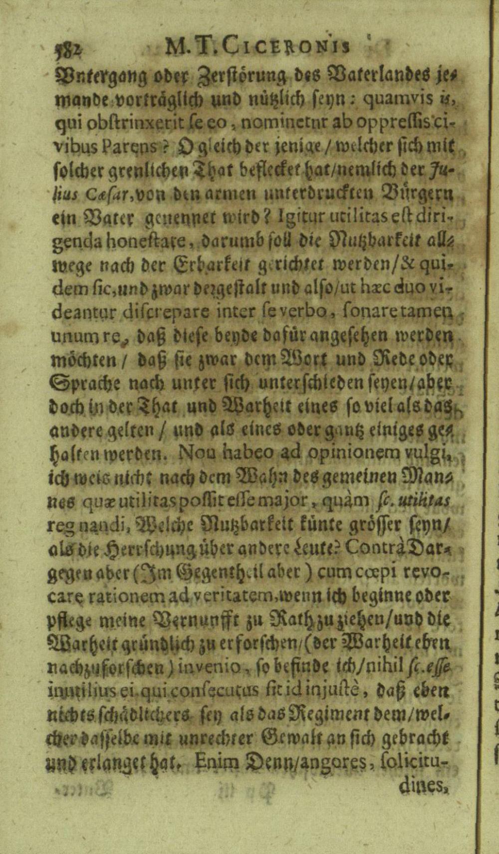 M. Tullii Ciceronis De Officiis, Id est: De vita, moribus, consiliis & actionibus hominis rectè conformandis & regendis Ad Marcum Filium : Libri Tres / Ab innumeris vulgarium editionem mendis crassissimis liberati, & in gratiam & commoditatem studiosae juventutis interpretatione germanicâ perspicuâ & fideli expositi à M. Johanne Rhenio