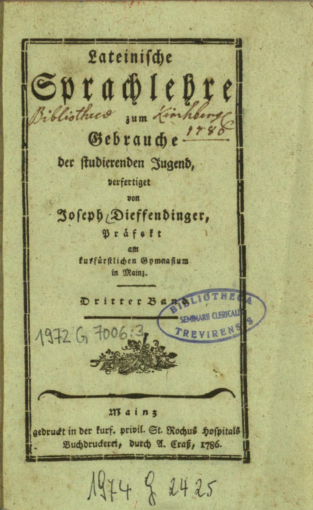 Lateinische Sprachlehre zum Gebrauche der studierenden Jugend