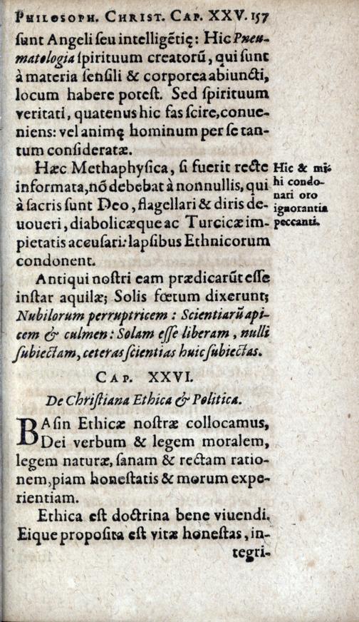 Cap. XXVI: De Christiana Ethica et Politica