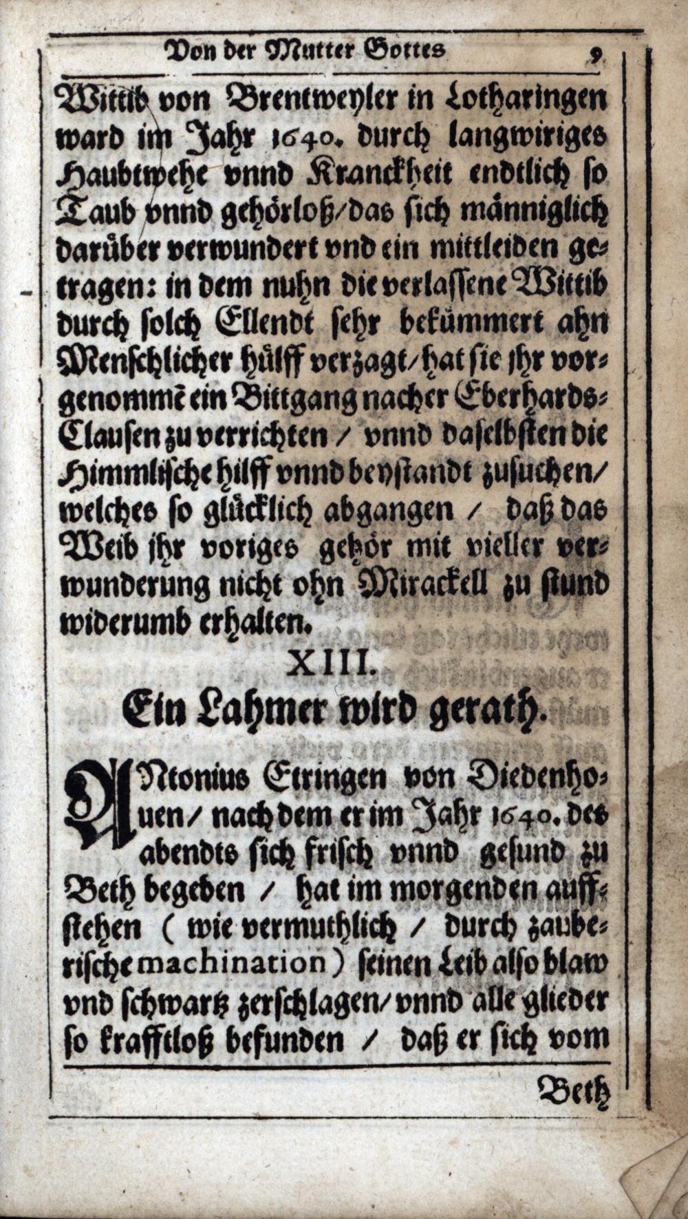 New Wunderwerck Vnd Gnaden Der schmertzlichen Mutter Iesv Trösterin aller Betrübten zu Eberhardts-Clausen Ordinis Canonicorum Regularium S. Augustini im Ertz-Bischoffthumb Trier vom Jahr 1640. biß auff 1647.