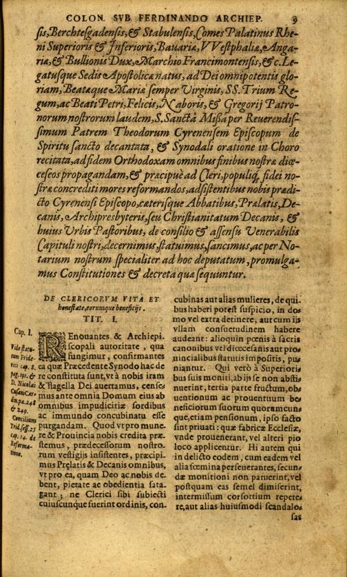 Synodvs Dioecesana Coloniensis : Svb Reverendissimo Et Serenissimo Principe & Domino D. Ernesto Archiepiscopo & Principe Electore Coloniensi, &c. Præsidente Serenissimo Et Reverendißimo Principe ac Domino D. Ferdinando eiusdem Ecclesiæ Coadiutore & Administratore, Utriusque Bauariæ Ducibus. Anno Post Christvm Natvm millesimo quingesimo nonagesimo octauo 2. Octob. Celebrata