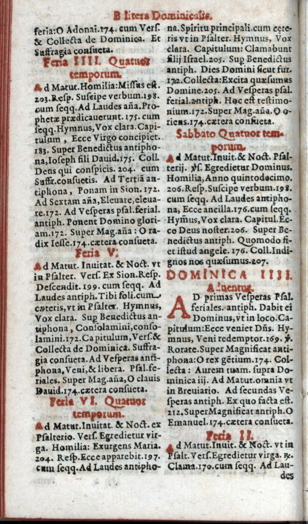 Index juxta quem per Adventum horae canonicae servantur