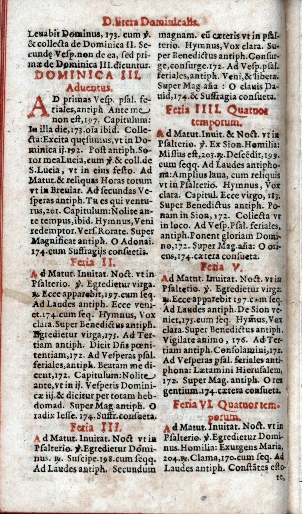 Index juxta quem per Adventum horae canonicae servantur