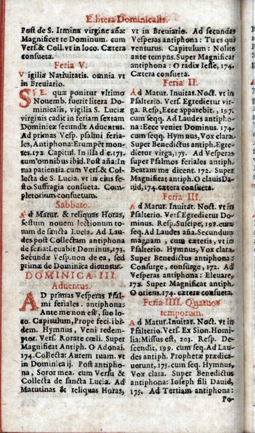 Index juxta quem per Adventum horae canonicae servantur
